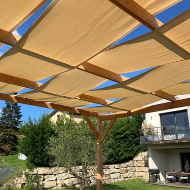 Chaque pergola en bois est unique, avec des nuances et veinages naturels qui évoluent au fil du temps.